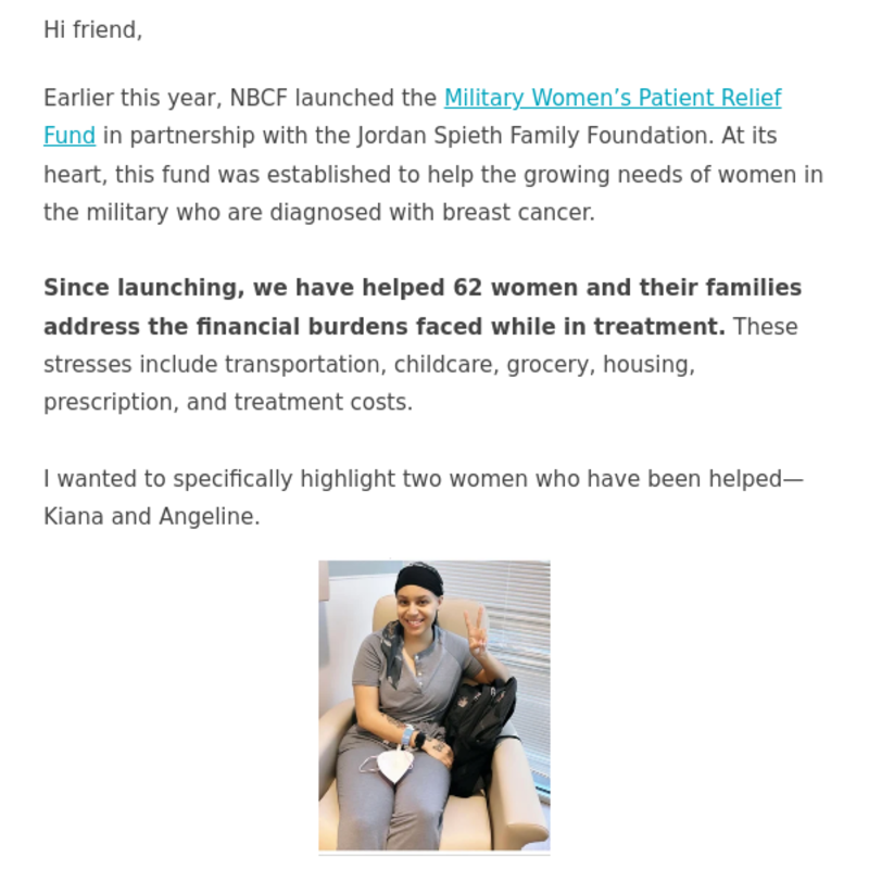 An update on NBCF’s Military Women’s Patient Relief Fund