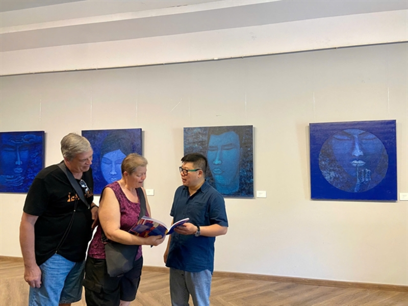 metaphors for various emotions and thoughts at the city Fine Arts Museum. The exhibition “Hiện Tại Màu Lam” (The Blue of Now) displays more