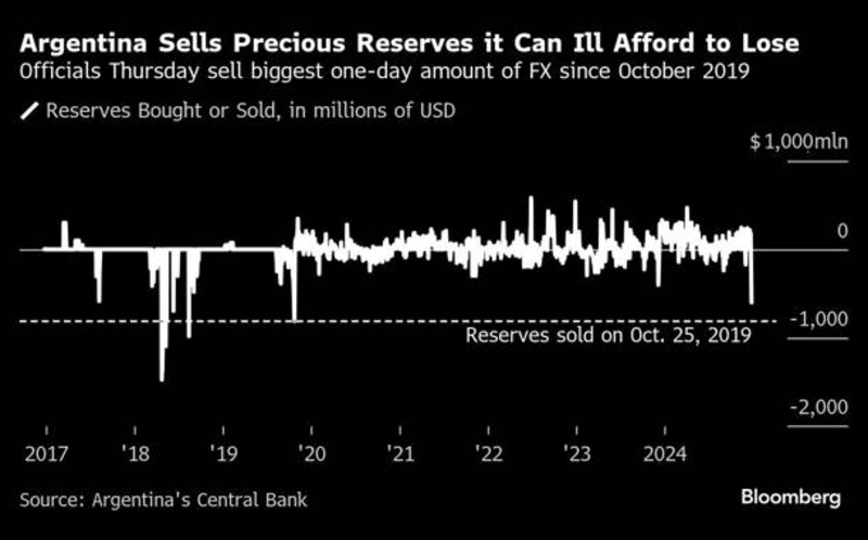 Argentina Sells Most FX Reserves Since 2019 on Importer Demand