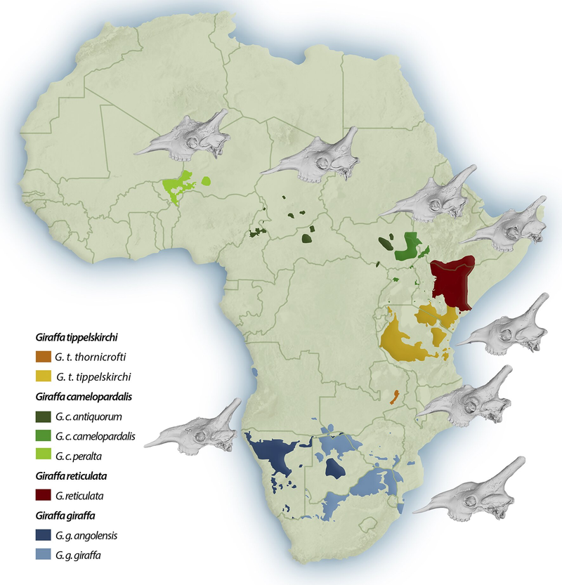 Morphological evidence supporting four giraffe species classifications