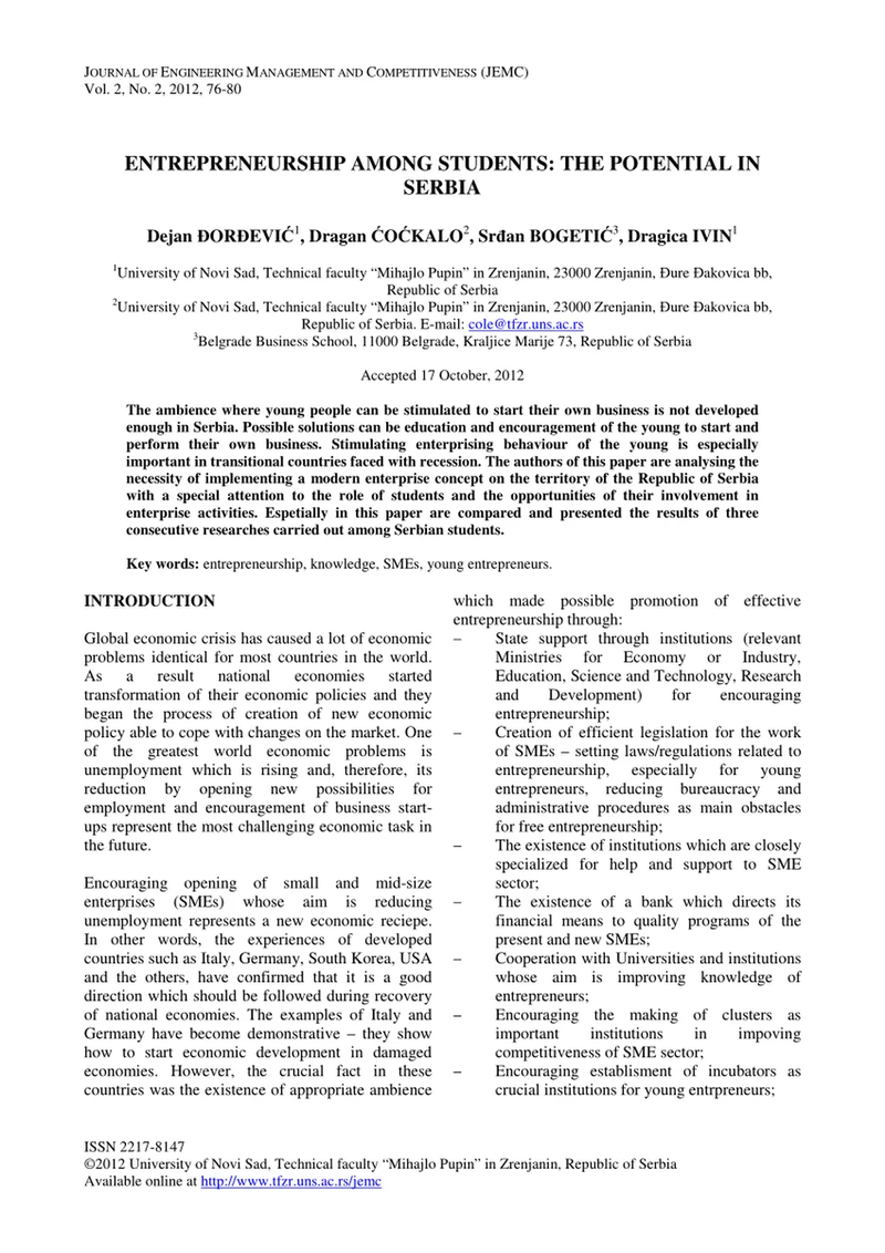 Serbia’s University Students Show Mixed Interest in Entrepreneurship Growth