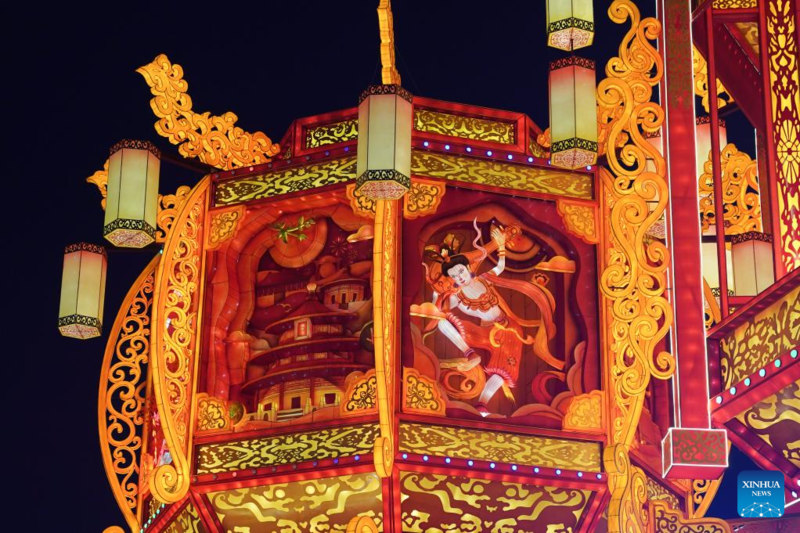 Tourists visit 31st Zigong Int'l Dinosaur Lantern Show in Zigong, China's Sichuan