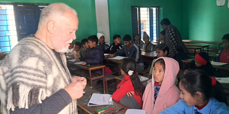 Australian artist Marsden teaching art to students in Diktel