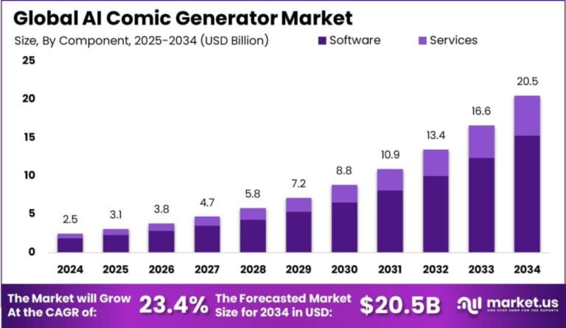 AI Comic Generator Market Expand Significantly With CAGR of 23.4%, Revenue Estimated at USD 20.5 billion by 2034