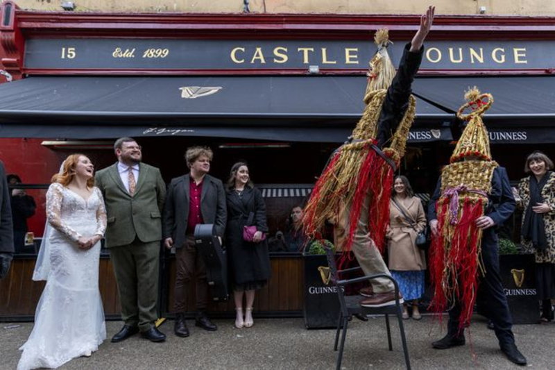 Dublin city centre wedding brings back old Irish tradition with appearance of straw boys